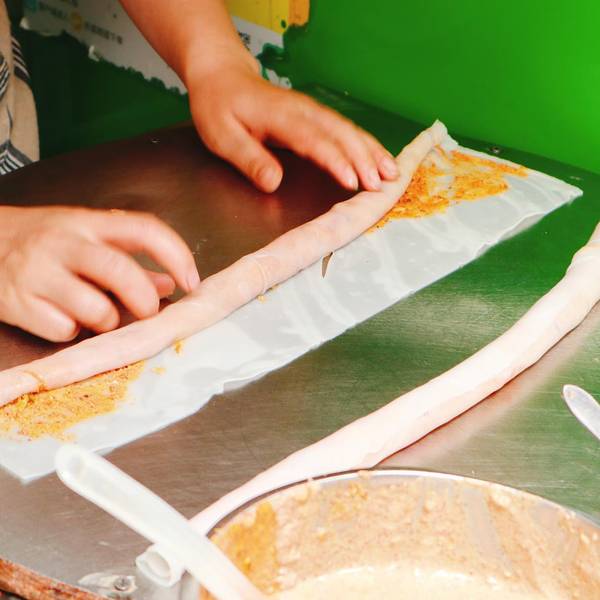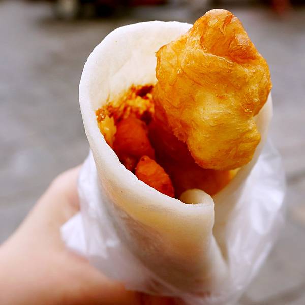 在洱海门门口(城外)看到一个卖早餐的小摊铺。叫漾濞卷粉。 看着一般就没买,让二冬买了我试吃哈哈哈哈 结果一吃完全惊喜果断跑回去又买一份 外面的饼虽然是用火烤的但不干不硬!Q弹Q弹的! 里面包的菜加上辣椒酸酸辣辣的正合我意 推荐只加火腿肠就行,不用加油条! (他家用的火腿肠是双汇王中王的,不是其他什么乱七八糟的杂牌。)