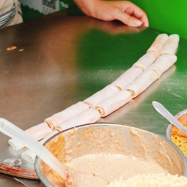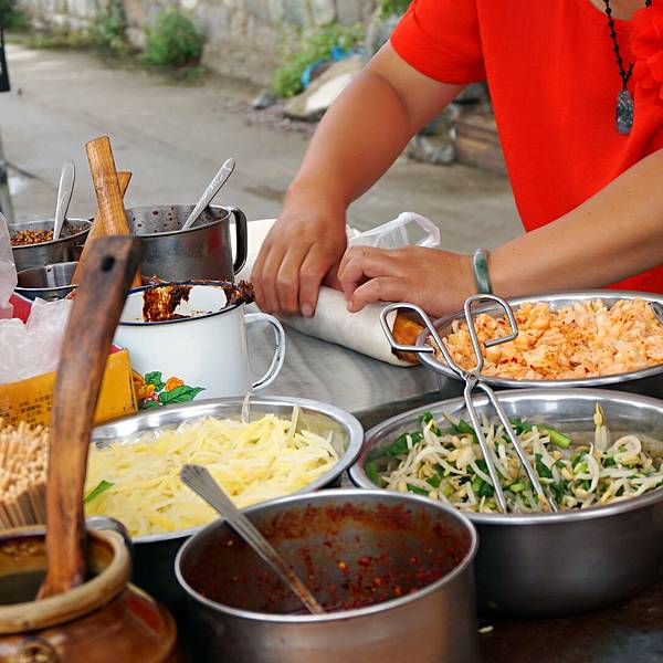 卷粉在大理是一种比较常见的小吃,凉吃热吃都可以……把作料放在卷粉里面,然后裹起来更好吃