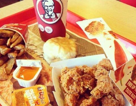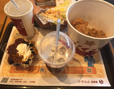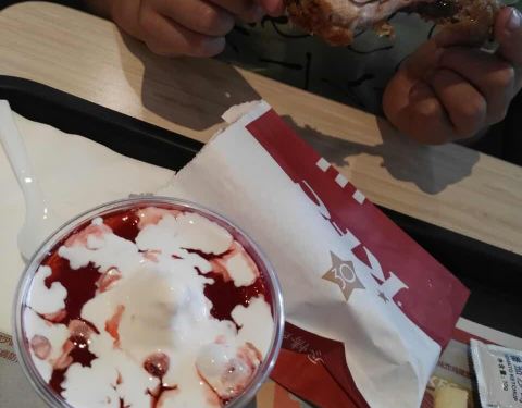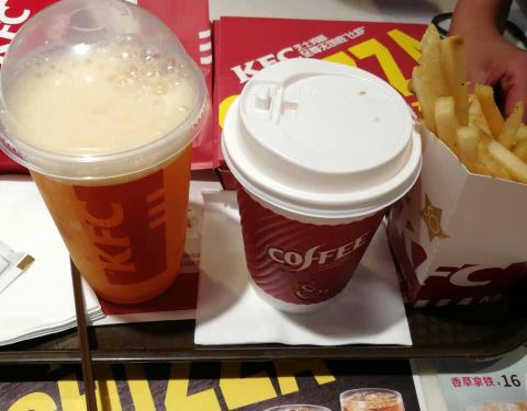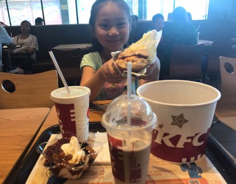 外面炎热的天气,来肯德基的明智的选择,吃着美味的汉堡和炸鸡,好凉快呀!