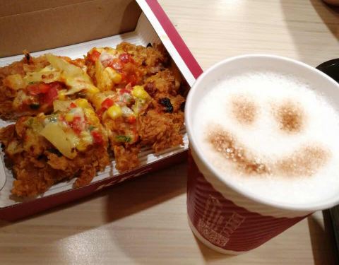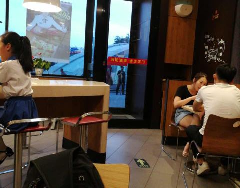 地点很好,很容易找到,人不是很多。很方便的选择,蛮不错的,旅行外出选择很好。去逛街,走累了上去点了杯豆浆喝一盒鸡块,歇歇脚等人··········在比较繁忙的电子世界里面,里面的价格还是没有上涨,服务也很好,是很多上班族休息的地方!