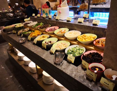忙了一个礼拜,感觉自己要虚脱了,那就让美食来犒劳自己。五缘水乡酒店湖畔自助餐厅位于三号楼,环境不错,能欣赏到湖景,热菜感觉偏西式,种类繁多,除了,还有甜点、日料、水果等,吃的特别high,可惜冰激凌换了,不是哈根达斯[流泪]