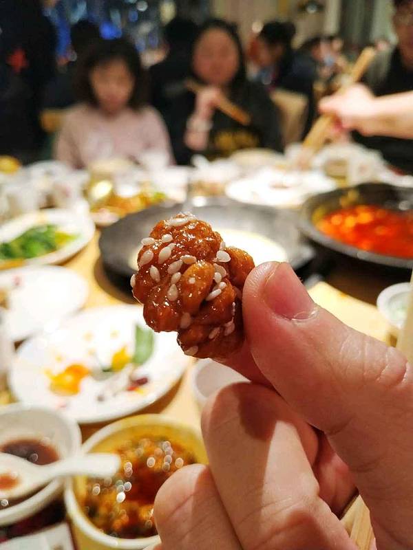 - 锅底有药材,其实还是比较香不过我觉得鸡肉口感略略比较柴。琥珀核桃也是必定点的菜色之一,比较香口