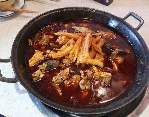 在李子坝轻轨站拍照片后去吃饭,这家店貌似很出名,景观也不错,刚好我们去的时候已经过了饭店,是下午2点左右去吃的反正不用等。先点鸡,最少6斤起,所以建议来吃的话还是人多比较好,不然就要打包了。糖拌番茄...在李子坝轻轨站拍照片后去吃饭,这家店貌似很出名,景观也不错,刚好我们去的时候已经过了饭店,是下午2点左右去吃的反正不用等。先点鸡,最少6斤起,所以建议来吃的话还是人多比较好,不然就要打包了。糖拌番茄这个好吃,酸甜开胃,吃辣后吃这个可以解辣。锅底有药材,其实还是比较香不过我觉得鸡肉口感略略比较柴。琥珀核桃也是必定点的菜色之一,比较香口。调教自己搭配,不过想要蒜蓉的需要问店员拿,貌似自助的位置没有这个,服务也不错。