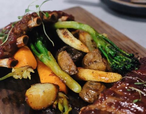 - 烤猪肋排 酱甜带着碳火香,肉软烂入味,配的烤蔬菜也不错,是普通的好吃。下次要专门去拍一下