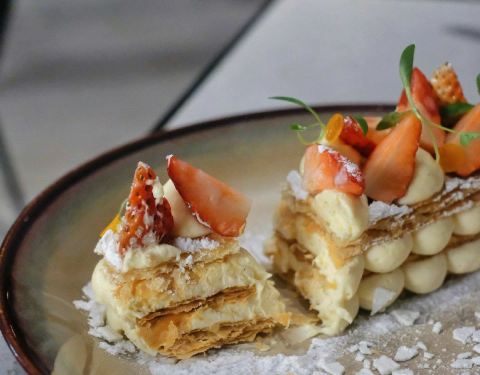 集家居店和餐厅于一体,装修风格太太太喜欢啦!下次要专门去拍一下。除了正餐还有下午茶套餐。 烤牛骨髓配法棍 烤过的牛骨髓抹面包吃挺香的,但是这个性价比很低。 黑松露咸蛋黄披萨 不愧是招牌披萨,一上桌就被芝士、咸蛋黄混合松露的浓浓咸香给香晕了。不仅仅是表面,连奶酪层下面都铺了满满的黑松露,加上厚厚的芝士和大颗的咸蛋黄,怎么可能不好吃嘛!! 烤猪肋排 酱甜带着碳火香,肉软烂入味,配的烤蔬菜也不错,是普通的好吃。 拿破仑 酥皮薄脆很好切,卡仕达奶油香浓幼滑。点睛之笔是零星的金桔皮,冷不丁吃到,金桔的清新感一下子在嘴里漫开,有点小惊喜。