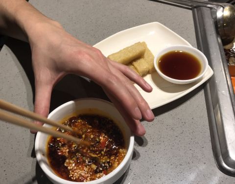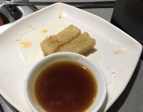 想吃火锅又怕踩雷,当然还是要去海底捞。麻辣清汤锅底必点,牛油锅也很想点啦,但是每次都是和男朋友两个人,略奢侈,于是商量下次四个人吃火锅时一定要试试牛油锅。 给我们服务的东北口音大姐特别热情,态度忒好了,不过我们一般用不着什么服务啦,上菜就狂吃。肥牛纹路好看,鱼饼必点,豆花配上豆花酱又麻又辣,一定要试试。黄糖糍粑还行,不惊艳,不过便宜啊。
