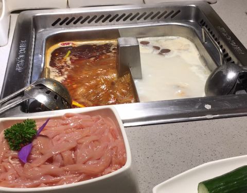 口味很不错,菜品种类很多,选择丰富,调料蘸酱味道也号,上了一盘又一盘的牛肉羊肉鱼肉啥的,虾滑啊鱼滑都不错,毛肚,黄喉,扇贝,蟹脚都好吃,服务员态度没的说,特别完美