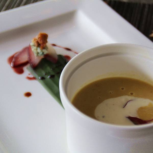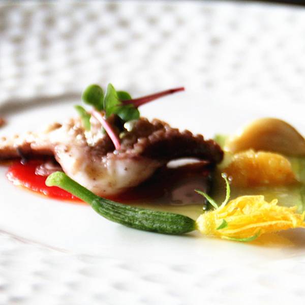 前菜的八爪鱼搭配很清新 黄瓜秧 蒜和酸甜汁 主菜的千层意面不错吃,土豆泥的口感,芦笋和小番茄