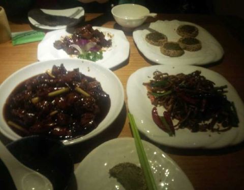 作为抹茶控的我,对于接近抹茶的绿茶也是颇有好感滴。这种绿茶饼吃起来就像小糕点一样,芝麻浓郁香,配上绿茶的清香。牛肉诱惑和古法糖醋鸡这两个肉菜做得很不错,味道浓郁。个人不喜欢辣的,不过这个辣椒只是个辅助材料,香炒茶树菇味道还行。朋友团购团了这家的二人餐,量比较大,我们剩了很多,可能是早饭和中饭间隔时间太近了吧。