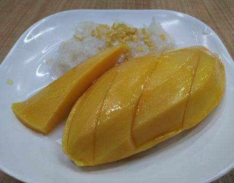 这是商场内的食阁,位于曼谷市中心繁忙的购物商圈。在大C超级中心超市的楼上,聚集了当地熟食摊档。价格亲民,一份芒果糯米饭50泰铢。