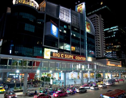 在大C超级中心超市的楼上,聚集了当地熟食摊档。这是商场内的食阁,位于曼谷市中心繁忙的购物商圈