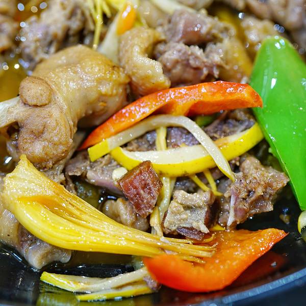 昆明一店,来昆明必吃榜上的Top 1,老滇山寨(永安路店),靠近昆明火车站。开有多家分店,不管中午还是晚上都是一座难求,等位时有免费瓜子可以嗑,还能看他家的特色民族舞,吃饭娱乐两不误。 思茅酸汤鱼片,招牌之一,几乎桌桌必点,鱼肉份量多,切片薄,晶莹剔透,鱼刺少,吃起来很过瘾,酸汤的口感又很开胃,作为主菜的不二之选。 宜良脆皮小刀鸭,外皮烤制的油光华亮,令人食欲大振,外皮酥脆,肉质鲜美,沾上秘制的烤鸭酱,比北京烤鸭有过之而无不及! 芭蕉叶烤肉,地方特色菜,回家就尝不到了,肥瘦相间的烤肉,切片均匀,刀工上乘,自带芭蕉叶的清新口味,富有质感。 环境富有民族特色,载歌载舞,热闹非凡,灰墙木椅,感受滇菜的美食文化。