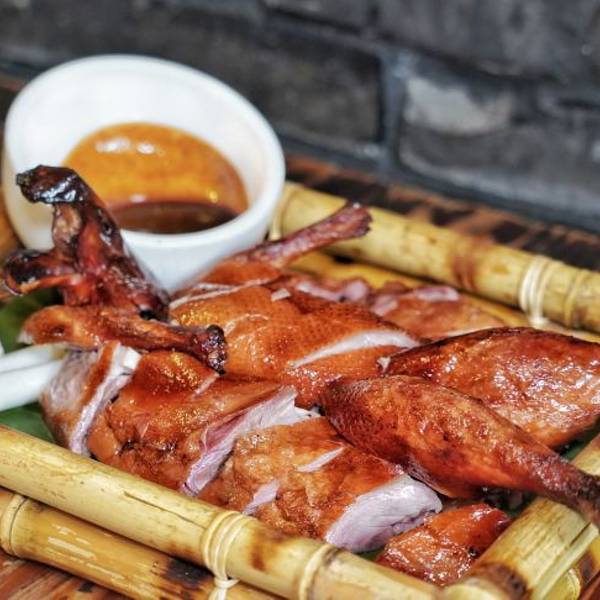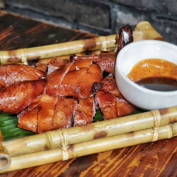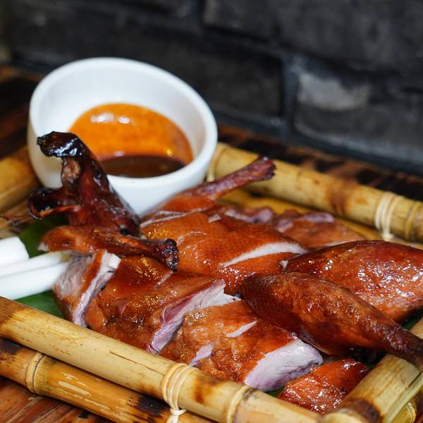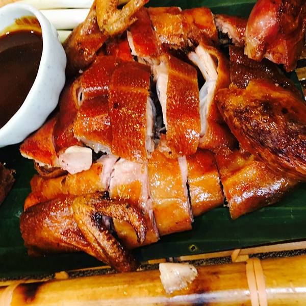 宜良脆皮小刀鸭,外皮烤制的油光华亮,令人食欲大振,外皮酥脆,肉质鲜美,沾上秘制的烤鸭酱,比北京烤鸭有过之而无不及!