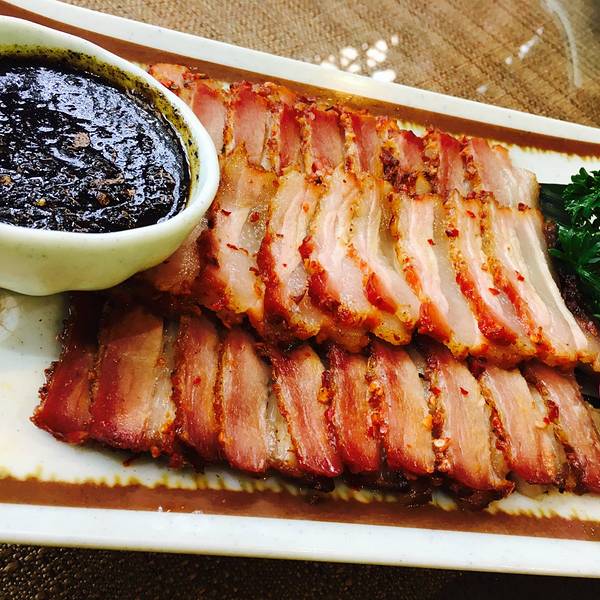 芭蕉叶烤肉,地方特色菜,回家就尝不到了,肥瘦相间的烤肉,切片均匀,刀工上乘,自带芭蕉叶的清新口味,富有质感。