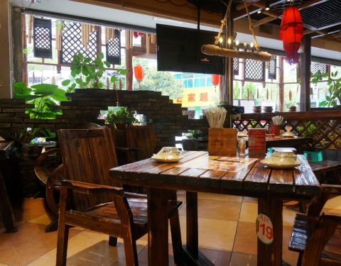 环境富有民族特色,载歌载舞,热闹非凡,灰墙木椅,感受滇菜的美食文化。