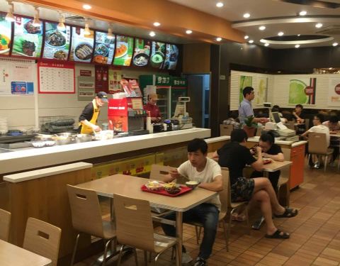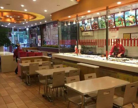 地方很大,卫生也不错!价格也不贵,很划算!有免费的饮料和粥!
