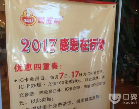 每天总有一顿要和朋友在顺旺基吃,是继大学食堂之后工作上班的大食堂,每次300起充,菜色多样,味道诱人,还有免费的茶水饮料,顾客不得不多呀,会一直支持的╭(╯ε╰)╮