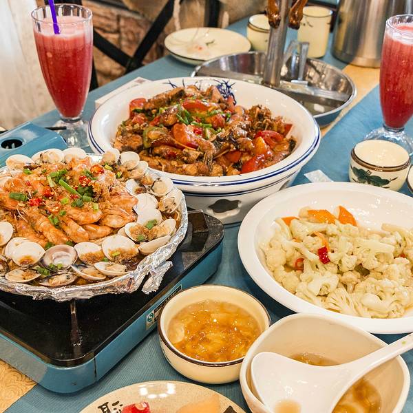 桂林山水甲天下,吸引着来自世界各地的游客,但桂林的美食大家也千万不要错过,特别是到阳朔旅游,必不可少的体验便是吃一顿啤酒鱼,作为阳朔的招牌美食,漓江剑骨鱼的鱼肉十分可口,没有一点腥味让人满意,经过啤酒焖过的香味更是让人食欲大开。阳朔的啤酒鱼集中在西街正门牌坊对面的这条街上,这次带着对象来阳朔旅行,也是选择了街上这家20年老店,连锁品牌“谢三姐”的金牌总店,首先考虑的因素就是位置好,吃完饭过条马路就能到西街入口。店里的装修环境很漂亮,属于广西地区特色的花园式装修,包间一圈都是各种花花草草挂着,大厅的环境也可以,桌子比较多但晚上过来依旧要等位置,这也是西街的一个特色,白天反而没什么人夜晚却热闹得步行。这家店的交通也很方便,在阳朔县城乘坐公交1路车,到西街站下车走二十米即可到达;如果是骑电瓶车过来,店里还有人专门帮你把车子看着,太阳大了还帮你挪到阴凉处,这点必须点个赞了。因为我和女朋友都是吃货,所以这次也是把店里的几个招牌菜给点了一下;除了啤酒鱼这道必吃菜品,“蒜香虾和烤鸡”也是卖得很火的特色菜品,我们同样给安排得明明白白,其中蒜香虾的虾肉非常鲜美,配合蒜香与花甲的味道吃着也比较独特,缺点是这一盘花甲当中有一些没弄干净,有沙子吃着影响了很大的口感。另外一道“金管舞林鸡”则是用钢管架着烤制而成,其肉外焦内嫩,口感一流没有话说,看着油腻但其实油水都顺着钢管流在了盆里,吃着除了香味没有油腻的感觉,当然如果能再配点辣椒面就完美了,胸脯这一块的肉比较厚实,吃着还是淡了点味道。另外要夸一句阳朔美食店的配套服务:“除了点的鲜榨果汁特别甜,红糖冰粉和水果还是免费吃,夏季解渴是真心不错”。