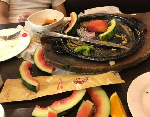 - 一共三人来吃,我和女朋友的鸡蛋都是焦糊的,自助区的东西也不满意,炒面是凉的,绿豆汤是馊的,水果...