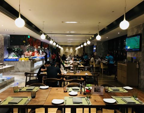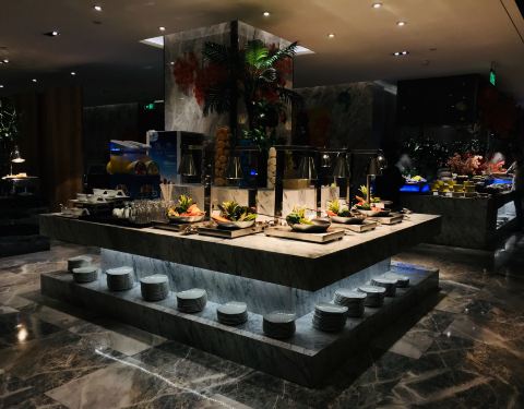 能吃出满足感的自助餐厅。海鲜和刺身是他们的特色,因为酒店本身开设有日 料餐厅,所以这家的海鲜和刺身相比其他星级酒店自助就新鲜太多,餐厅设计 和桌椅等细节也非常到位,再配以别家一半的价格,想不点赞都难。