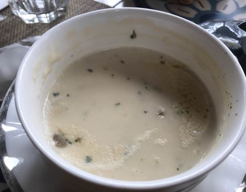 肉饼相当推荐,味道很正。蘑菇浓汤很蘑菇味,好喝。下雨天惬意~