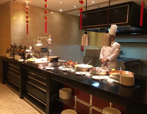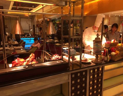 香格里拉大酒店一楼,环境优雅、整洁,服务热情周到、撤盘很及时,菜品味道很好,品种繁多供人们选择,尤其是三文鱼刺身、甜品很新鲜美味可口,有白酒啤酒、雪碧奶茶银耳羹……