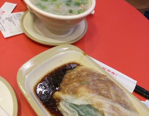 粥较薄很好喝,肠粉两个都很美味,豆浆小贵,还不错!