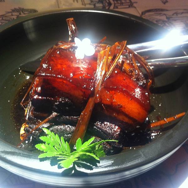 草扎肉:色泽非常鲜艳诱人,烧得很入味,完全没有油肉的油腻感了,连皮带肉一起吃非常的好味道