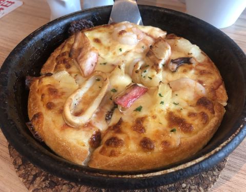 周浦最大的商场了吧,各种小吃比较丰富,星巴克常年爆满,而且非常不喜欢里面嘈杂的环境,所以第一次尝试万达的必胜客,虽然是两层楼,但一楼位置很少,二楼也不算大,奇怪的是,现在必胜客是被私人承包了吗,二楼的领班经理怎么感觉是个上海中年老阿姨呢,不是说老阿姨不好哦,是特别热情,做事麻利,只是跟其他店的风格不太一样,不过也还是好评啦! 因为下午来打发时间的,所以就选了下午茶套餐,性价比比较高一点,普通的饮料像咖啡红茶什么都可以免费续杯,坐一下午也没问题,配套的小食甜点选择不是很多,不过那个爆浆珍珠蛋糕倒是出乎意料的好吃,后来第二次在其他店吃的就差的远了,另外点了个迷你的披萨,只有三种口味可以做小盘装的,为什么不能多开发点品种呢!