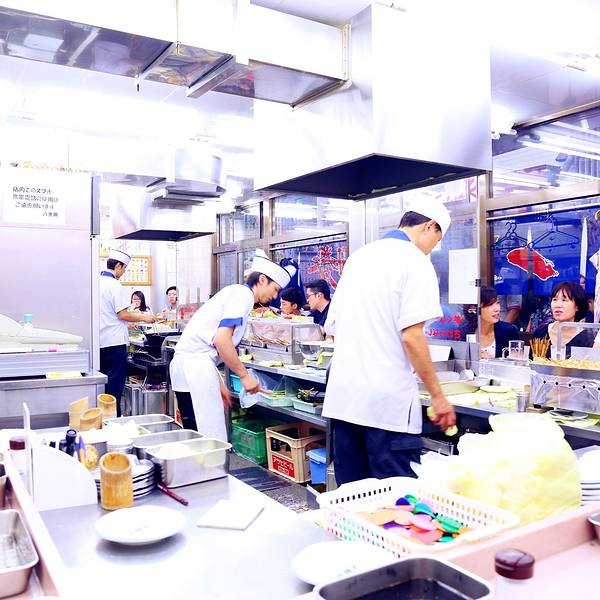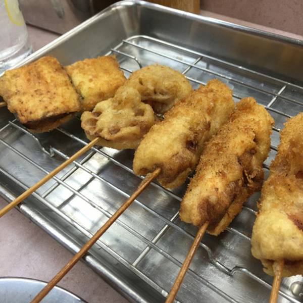 天王寺附近著名的炸物店,据说开了有30多年,上过很多电视美食节目。在当地保持着很高的人气。店内明档操作专门以油炸各种各样的天妇罗为特色。 食客都是围坐在吧台,选择自己喜欢的食材,点好后厨房小哥直接拿...天王寺附近著名的炸物店,据说开了有30多年,上过很多电视美食节目。在当地保持着很高的人气。店内明档操作专门以油炸各种各样的天妇罗为特色。 食客都是围坐在吧台,选择自己喜欢的食材,点好后厨房小哥直接拿去裹粉上酱,然后直接烹炸,一气呵成,动作很快!牛筋味噌烧、炸鸡肉串、炸鲜贝柱及炸各类蔬菜都是这里点单非常高的菜。 特别注意的是店内商家会提供一大份沾酱,刚炸好的天妇罗可以直接放酱料内滚酱,但千万不要重复蘸哦。炸物吃多了感到油腻的话,可以选择吧台上任吃的圆白菜叶,可起到解腻作用!另外建议点上一杯这里的生啤,天妇罗炸物和生啤绝对是最佳拍档!