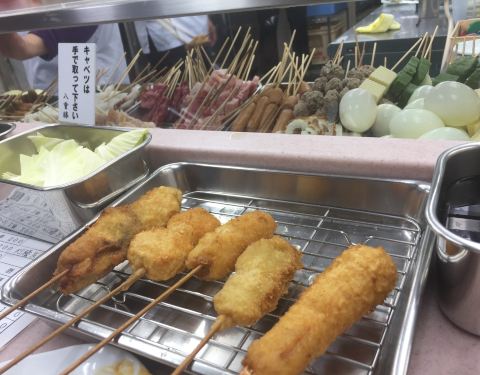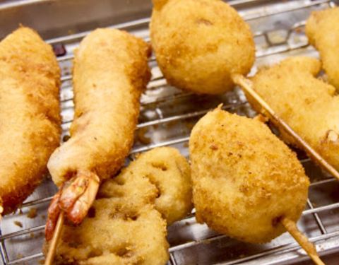 - 炸串主要有肉串、虾以及藕、花菜等蔬菜,人均一餐消费约150元上下,价格在大阪来说,价格还是比较合适的实用
