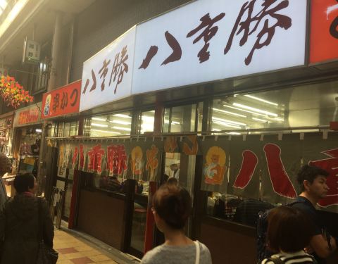 日本美食之都大阪道顿堀的一家传统日式料理老牌名店:八重胜(やえかつ );其位置优越,离南霞町、動物园前、 新今宮各站均较近;串烧、天妇罗、炸猪排是其招牌菜肴,味道不错
