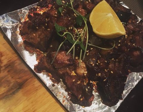 味道蛮不错的,海鲜锅微辣的汤底适合我的胃口,三文鱼骨是招牌菜,墨汁烩饭也是必点菜,似乎是有柠檬...