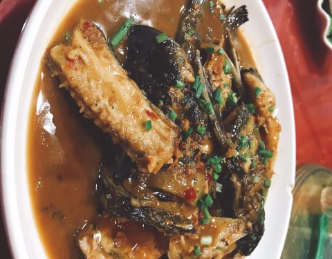 莫干山真是个好地方,每年夏天都要来玩一次。游玩结束后,来到附近的农家乐品尝地道农家菜,这个三里香q山庄真的太漂亮了,花园餐厅一般,从楼梯上到二楼,大平台都是各种花草,美丽极了。老板热情领进去,餐厅的客厅是投影电视,可以点歌唱k,唱了几首歌,要上菜了。红烧野生杂鱼超级美味,还有香椿土鸡蛋,真的太香了!