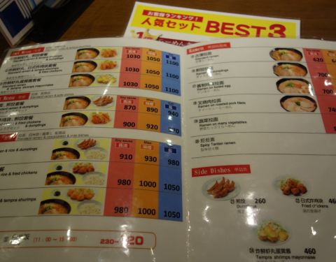 大阪古潭面店在难波地下商业街里。原本准备在难波地下城吃一兰拉面,结果人太多了排长队,决定换一家时就看到古潭。客人也不少,但是不用排队。以套餐形式为主,二人餐、三人餐,菜品口味咸鲜,服务很好,有中文菜单,价格适中。