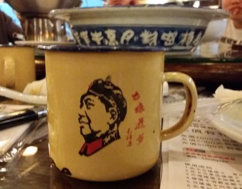 有滋有味的招牌鱼很好吃 推荐 装修有点怀旧的味道 碗什么的都有点坏的 为了配合装修风格 所以故意搭配这种看上去用了很久用到用缺口的碗 杯子也很好玩 用的是以前的那种搪瓷杯