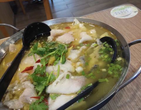 今天的酸菜鱼锅仔和炸鱼骨特别味道好,牛肉粉的汤略微淡了一点。