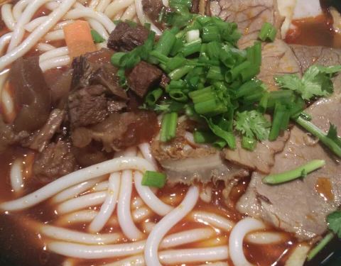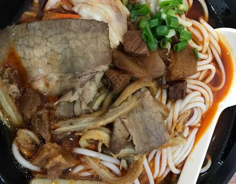 推荐全家福粉,里面有牛肉、牛筋、牛杂、卤蛋等,满满一大碗,汤汁口味偏重,牛杂有嚼劲,牛腩比较香嫩可口