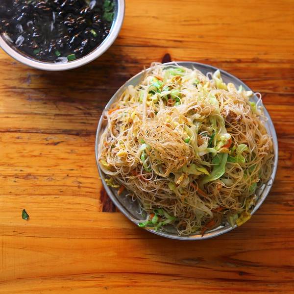粉干没下锅前,看上去和粉丝没什么区别。粉干的颜色比较深,炒过后有面的口感,却又是粉丝的味道。炒粉干配牛奶、紫菜汤、豆浆、鱼丸汤等往往是不少温州人的选择,可以说,温州炒粉颠覆了对炒河粉,粉干的概念。觉得好吃的是各种食材的融合,鸡蛋的香,粉干的弹且保持着水分,卷心菜的甜度,和肉的鲜味,满满一大份,不像上海吃的炒米线,容易不消化。这个吃完了,胃很舒服,还要了个紫菜汤,第一口喝很惊艳,要是桌上有点酸辣的蒜蓉辣酱,会更好吃开胃