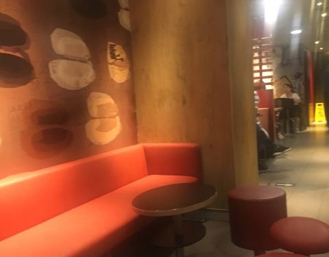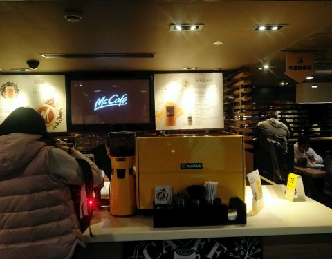 百联徐汇点里的一家麦当劳,临着华山路,附近有上海交大,徐汇商圈,所以客流量是相当的大。店在负一层,进门要先下楼,下面装修不错,既有公共座位,也有相对私密的空间。服务很好,上单快收拾卫生也快,还有个专门的点咖啡的柜台。