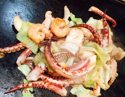 - 我特别喜欢猪肉和海鲜的,他们的食材有很多种,你就看着他们把所有的食材放在一起,然后做出来味道,...