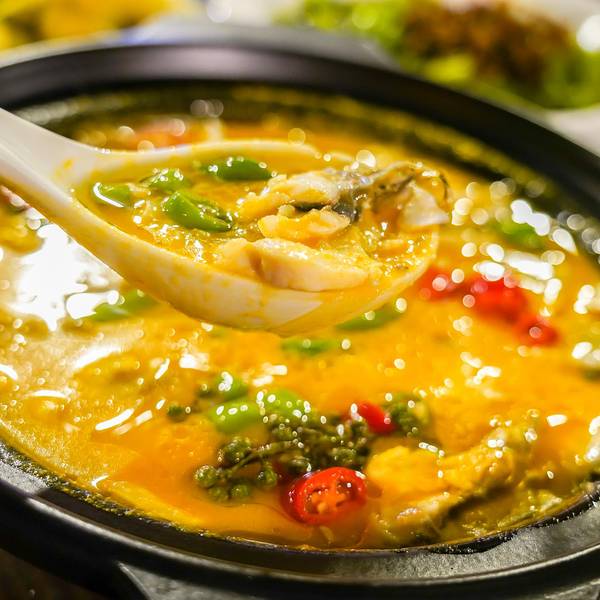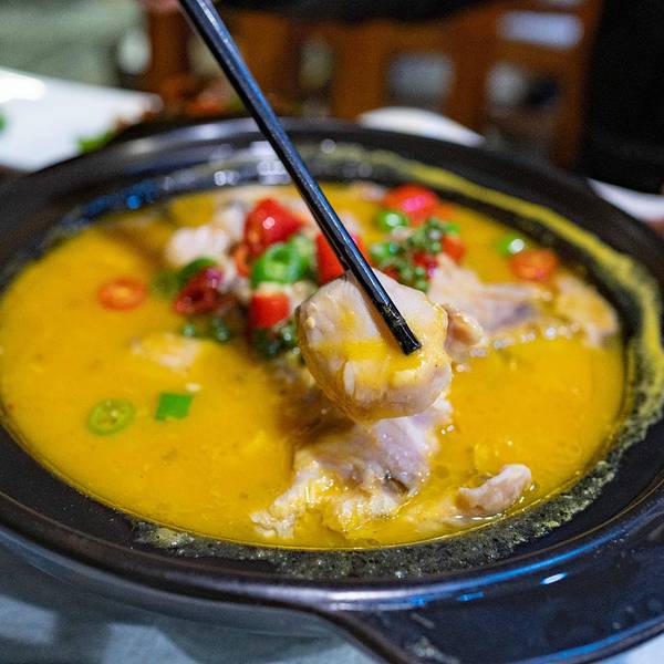 - 招牌百香果酸辣鱼,同样的是招牌必点菜,百香果汤底,好喝又开胃,酸酸辣辣,鱼肉超级嫩,鲜香嫩滑