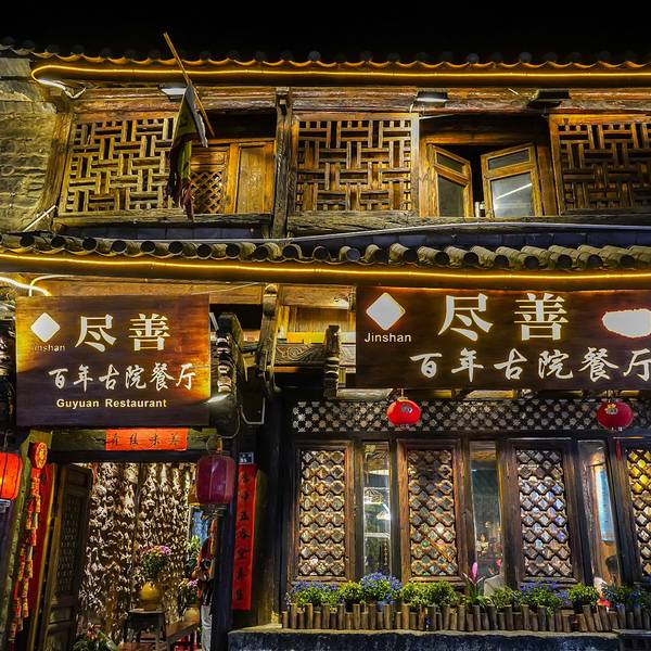 尽善百年古院餐厅也是出行前就已经加入行程单里的,已经有很多朋友给我推荐...晚餐时间到啦,回到大理古城闲逛,华灯初上,夜色阑珊,这时的古城已经和白天是完全两个样子了,白天温柔安静,晚上突然就热闹了起来。