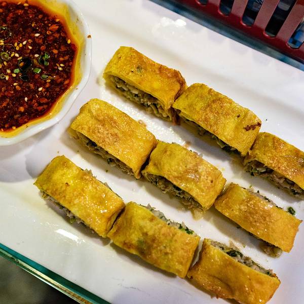 美食推荐 白族传统春卷,作为大理的特色菜一定要来一份,外皮是鸡蛋做的,蘸料超级好吃。餐厅环境