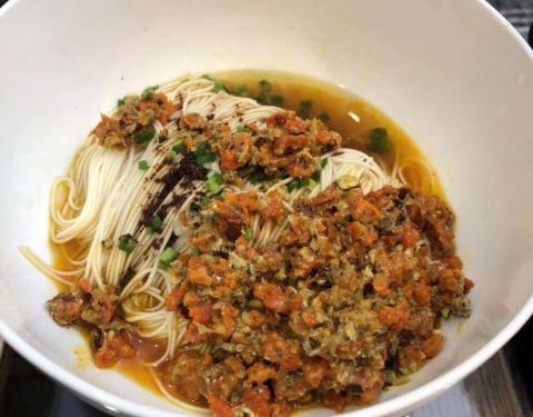 - 新晋的苏式面馆,因做法新式,高价食材所以价格比较贵,店面小到只放了四五张桌子,一不留神就错过