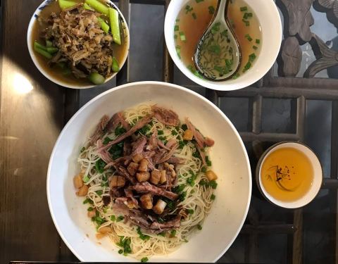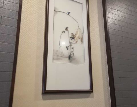 新晋的苏式面馆,因做法新式,高价食材所以价格比较贵,店面小到只放了四五张桌子,一不留神就错过。小归小,但却布置得古意盎然,颇有些情调。中式的桌椅和挂画,一尘不染的餐具和茶具,这环境比起普通面馆算是精品级的了。