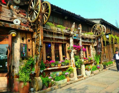 老树林酒吧,在西栅景区的一处船舶站,是起点也是终点。因为行色匆匆,没有进去,不过屋外的风景已经非常的撩人,阳光明媚,色彩艳丽!