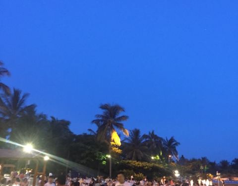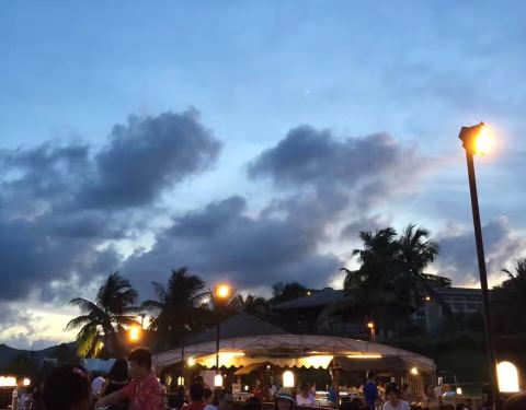 去吃烧烤了,夜幕来临,海风吹来,吃着烧烤喝着冰啤酒,爽