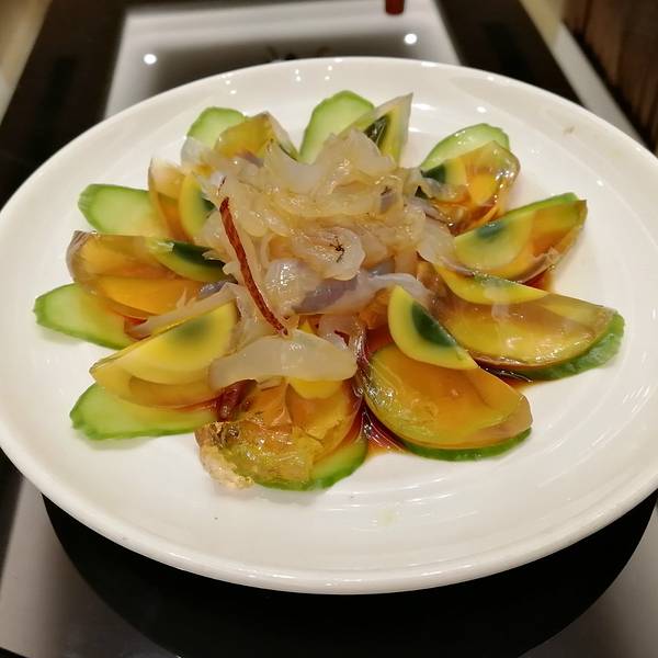 #刺身拼盘#很新鲜,个人比较喜欢吃甜虾,建议帮去虾壳,自己剥有点不方便。#大烤墨鱼#特别精致,也是我很喜欢的一道菜。肉质紧致,酱香浓郁。#海蜇皮蛋#他们家凉菜都很符合我胃口。#鹅三拼#很精致。冰草花生酱很喜欢。—— 主菜 ——