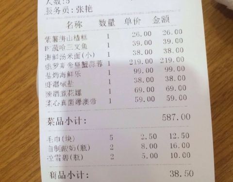 - 我也是看推荐去的,大排挡640,这里629,份量更多,口味也不差,毕竟我还点了雪蟹么,性价比高...